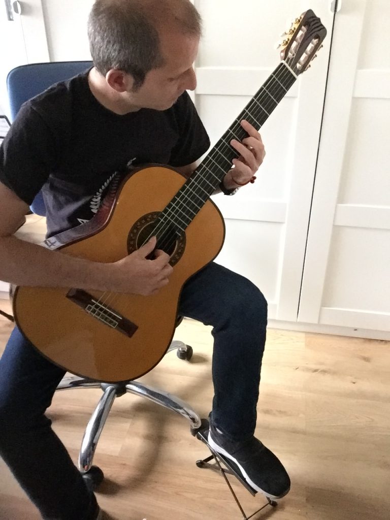 El banquito , o reposapiés , es el elemento mas tradicional para ayudarnos a colocar la guitarra de manera correcta.